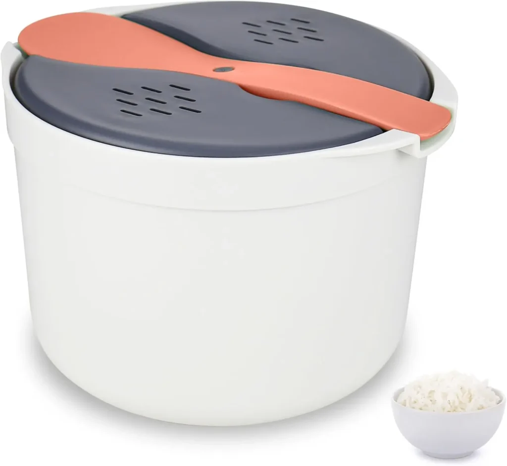 ★★★★★ 4.5 España 2-3 raciones Muy práctica y rápida. El arroz queda perfecto y en su punto. Ideal para el día a día y no ensucia el microondas.