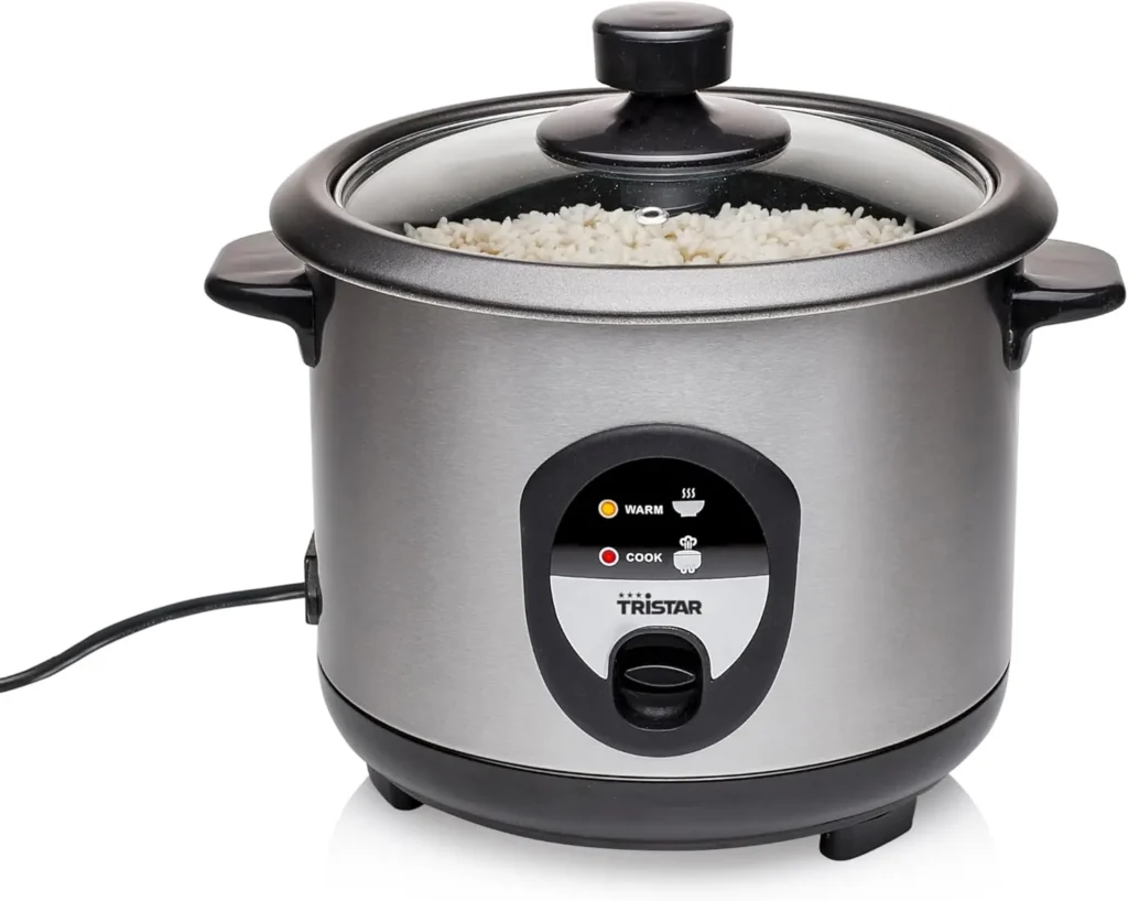 - –La Oster CKSTRCB7DFBLK es la arrocera 1 litro (ideal si quieres una arrocera pequeña y compacta). La Tristar RK-6127 ofrece mayor espacio (1.5 L): supera a la Oster en capacidad práctica para familias o porciones más grandes, aunque ocupa algo más de espacio. Para quien busca más volumen sin perder fiabilidad, la Tristar sigue siendo una alternativa a Oster y una arrocera confiable.