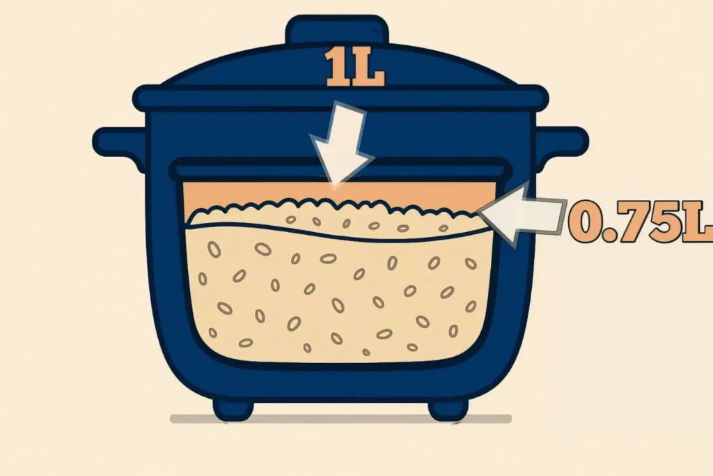 Cuando un fabricante dice que una arrocera es de “1 litro”, se refiere al volumen total del recipiente interno, no al espacio útil para cocinar. En la práctica, no se recomienda llenarla hasta el borde: el arroz necesita espacio para expandirse al absorber agua. Por eso, la capacidad útil ronda los 750 ml de agua más el arroz.