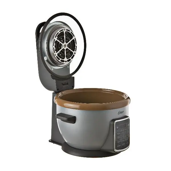 Arrocera Oster con capacidad de 24 tazas de arroz cocido.